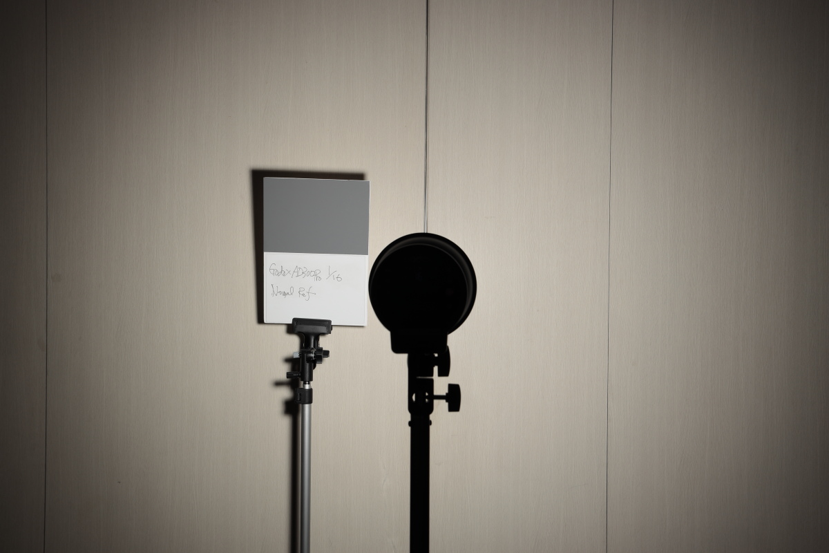 A4スチレンボートに、ホワイトボードとグレーカードを両面テープで貼り付けだけ.撮影を始める前のコマに入れてもイイし、テストだったらそのまま移し込んでしまってもいい.こんな感じ.