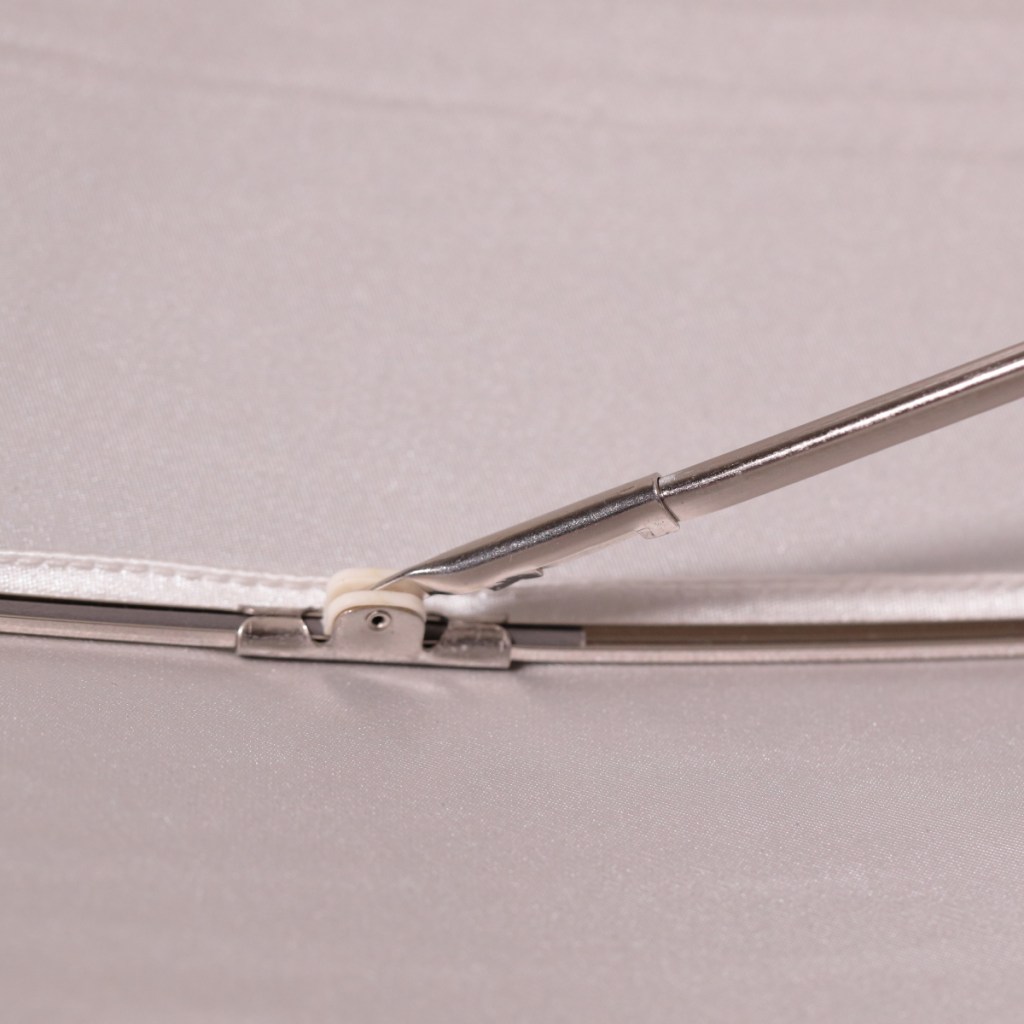数年使っているPHOTOFLEXのUM-RUT60 Umbrella.直径約60インチ.モノブロック一灯で楽ちんライティング.扱いがやや雑だったか、スタンド類と一緒にごちゃごちゃ詰め込まれたせいか、折りたたみ部分の骨が折れてしまった.