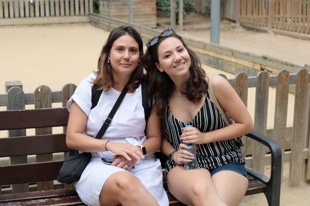 観光地で見かけた仲の良さそうな旅行者(たぶん)の親子(多分)がベンチで休憩されているところを撮らせて頂いた.右側の娘さん(たぶん)は最初の雰囲気のまま写真用の表情に移行してきている、左のお母さん(たぶん)も十分に素敵な笑顔だが、じつは表情がややが硬くなるギリギリの瞬間と言ったところ.この後数秒で、外向けの笑顔を作ったお母さんと娘さんの記念写真になってしまう.