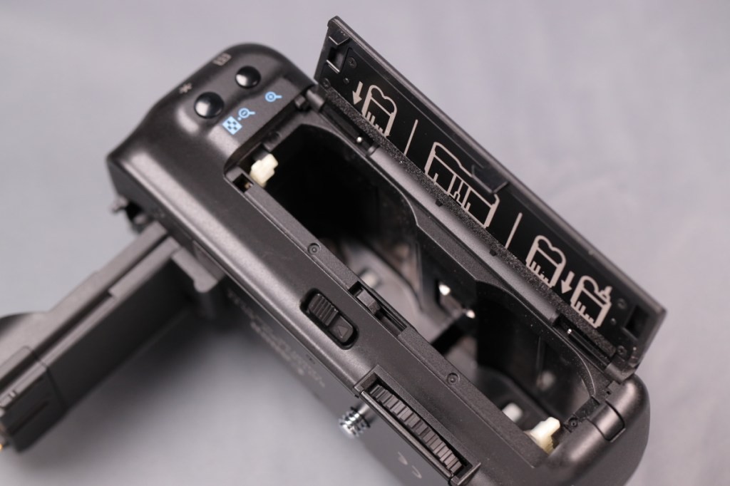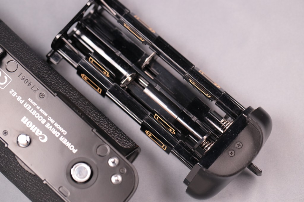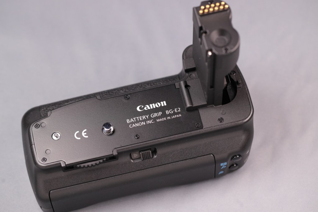 私が初めて導入したデジタルEOSはEOS 20DでBG-E2はそのバッテリーグリップとなる.EOSデジタルカメラ時代の縦位置グリップは、カメラ用のバッテリーが2本入るタイプとなり、名称がバッテリーグリップ(名称はBG-Exx)というラインナップに統一された.BG-E11あたりまではバッテリーを後ろ側から入れる構造になっており、そのため特にBG-E2グリップが浅く角張っている.レリーズとメインダイヤルもやや横向きであり、縦・横で使い勝手はかなり異なるが、慣れればそれなりに考えられたレイアウトだと理解した.接点の接触不良(?)のために、BG-E2Nが後に導入されたが、私の個体は特に問題なかったと記憶している.バッテリーグリップには単三形乾電池6本で使える、バッテリーマガジンが付いており、まだそれほど消費電力が大きくなかった当時のデジタルカメラは、撮影枚数が少なくなるものの単三形乾電池での運用が可能だった.(EOS 80Dあたりから非対応になったようだ)