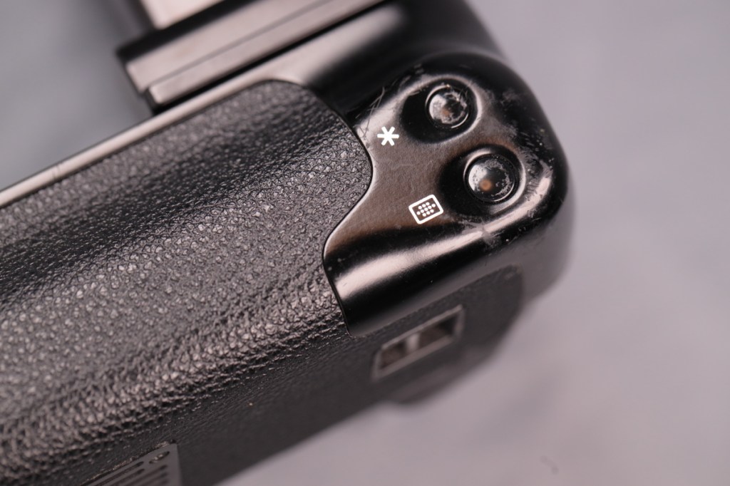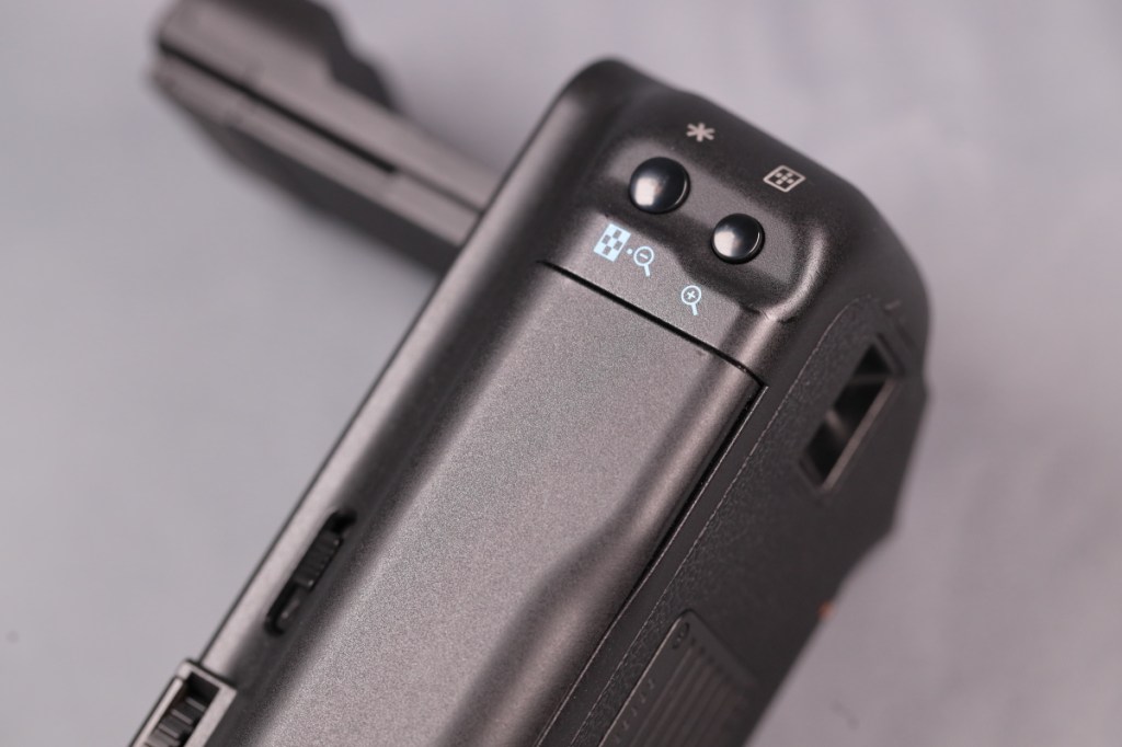 相変わらず肩口のサブ電子ダイヤルのためにAF-ONボタンの配置がカメラ本体と異なるが、実際に使ってみるとBG-R10では違和感なく操作できるように工夫されている.新たに拡大ボタンが配置されたが、あまり良い位置だと思えない.