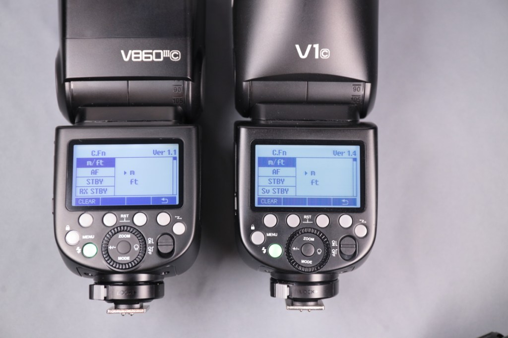 Godox V1 [KPI / Amazon]は2019年春に発売されたストロボだ.ラウンドヘッドのシェイプがProfoto A1に似ていたことでも話題になった.V860 IIIの本体部の外観はV1とほぼ同じ.発光に関する基本機能も同等である.一方、ヘッド部の形状と構造が異なることに起因すると思われる違いがいくつがある.