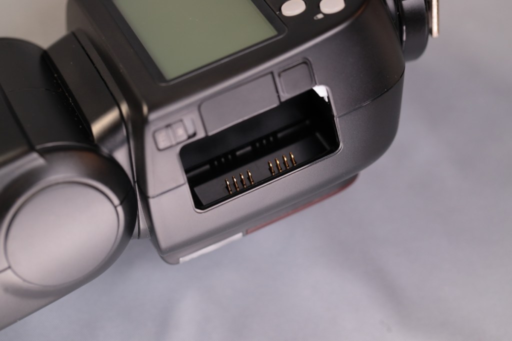 やはり一番気になるのはバッテリーの取り付け位置だ.突き抜けタイプのバッテリフォルダーは電極が外部近くにあり、水滴などはかなり危険.このあたりはProfoto A1系のバッテリーもむき出しの条件だが受け入れられているようなので、何とかなるのかもしれない.外で使う際にも、保存の際にも十分注意した方が良い.
