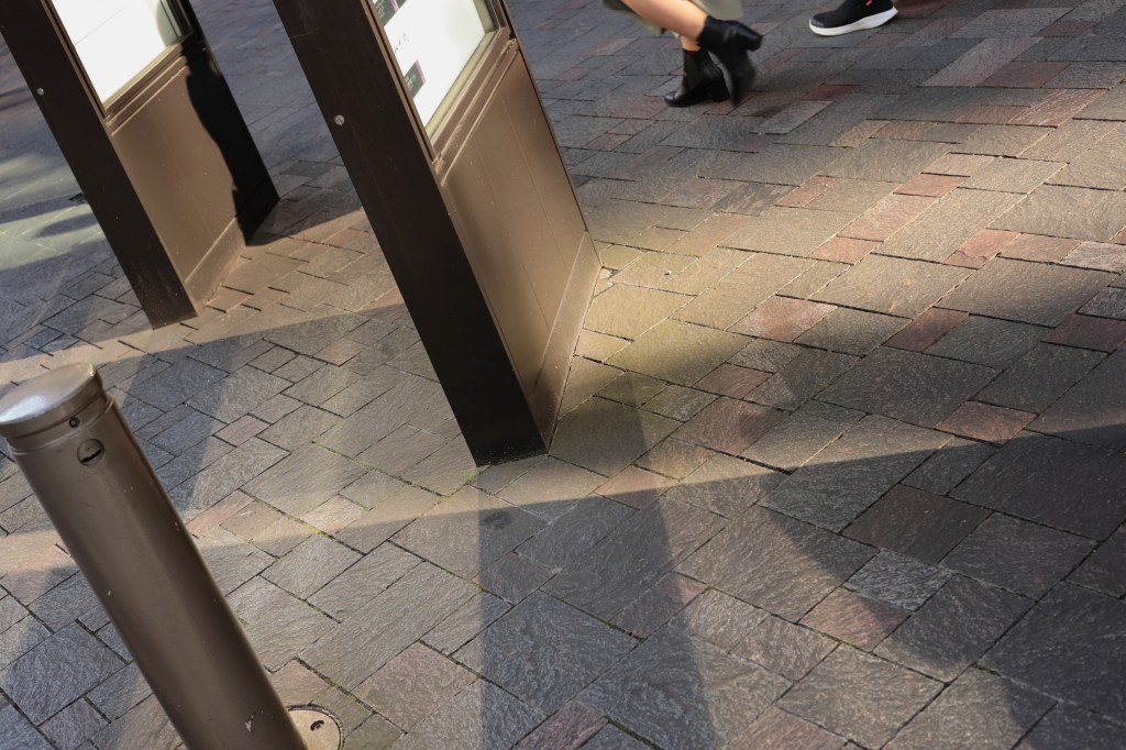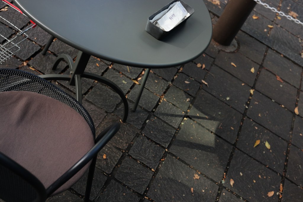 KITTE丸の内から西へ200m程歩くと、丸の内仲通りにぶつかる.この通りの周辺は”丸の内ストリートギャラリー”としてアートの展示が行われていたりして、東京駅周辺では何となくフォトジェニックなイメージがあるようだ.アート作品の写真は、様々なところで見られるので、私はストリートとして目に付いたものを撮影した.建物ガラス壁面からの反射光を探したり、ショップのカラス窓を意識してモチーフに選んだ.途中、カフェのテラス席でお話しをされていた方に声をかけて写真を撮らせて頂いた.何となくヨーロッパの街角っぽい雰囲気.