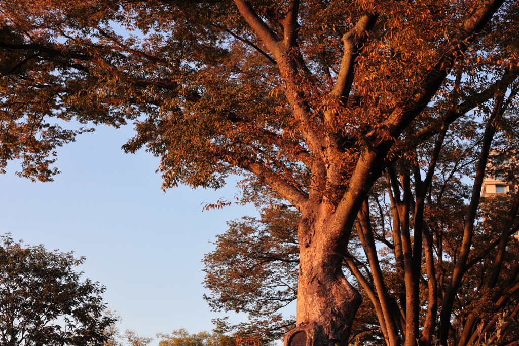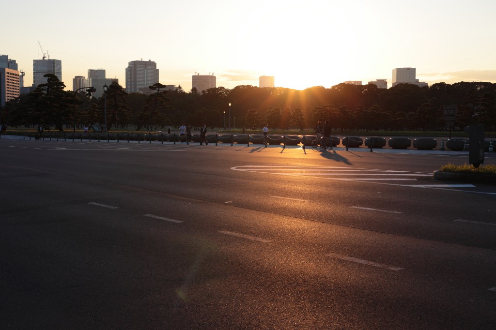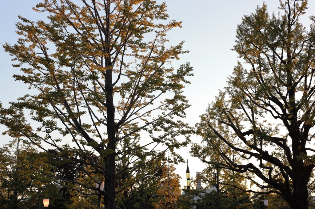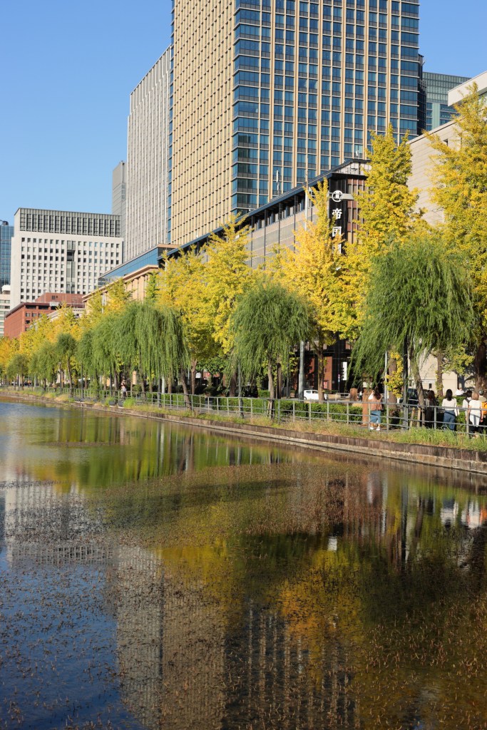 晴海通りに出ると景色は一転.陽は傾きかけているものの、晴天の空から秋のコントラストで皇居周辺を照らし出す.目に付いた秋の色や反射、青空を見ながら進み、桜田門から皇居前広場へと進む.